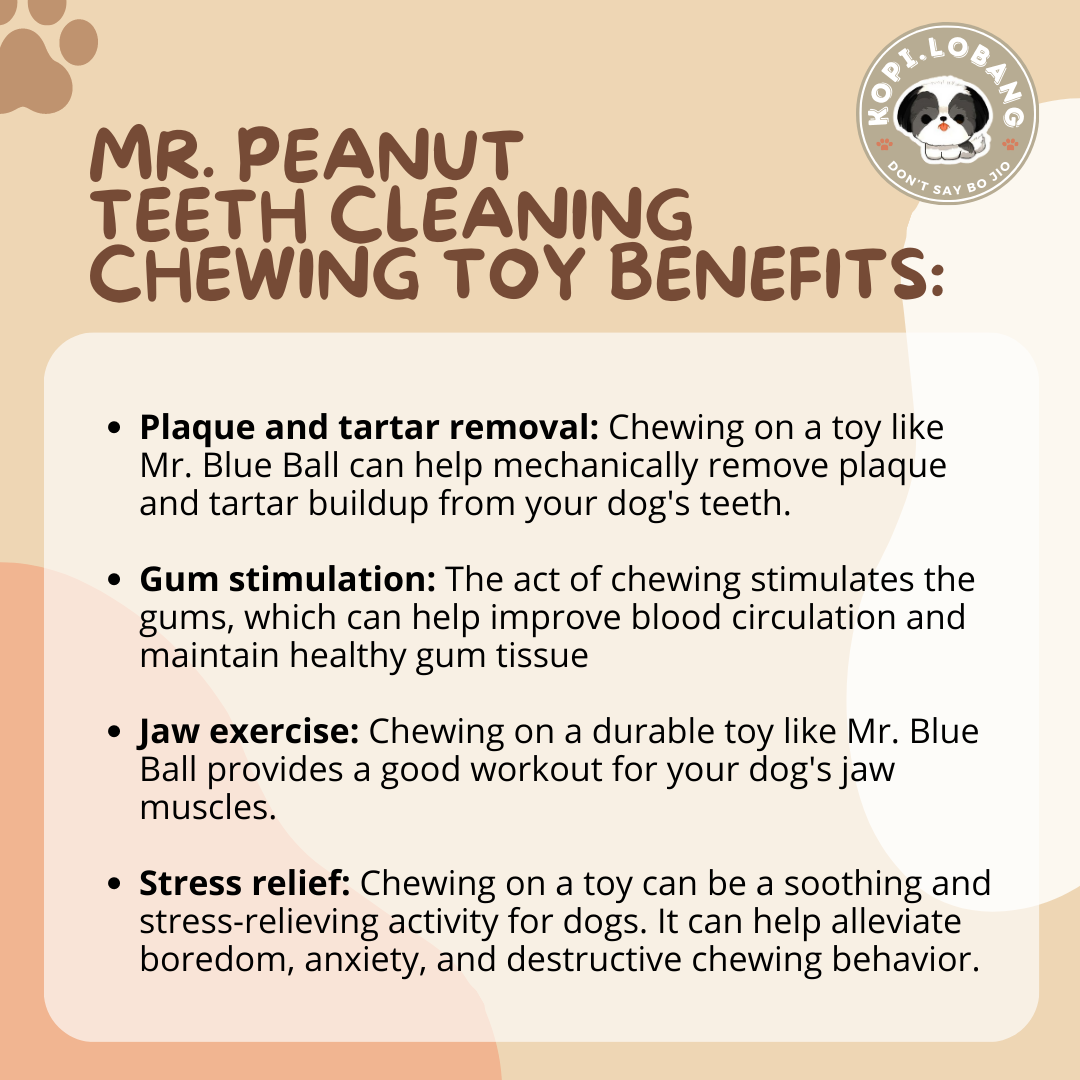 🦴 Safe & Non-Toxic: We care deeply about your pet's well-being. That's why MR. PEANUT TEETH CLEANING CHEWING TOY is made from durable, non-toxic materials, ensuring hours of safe playtime.