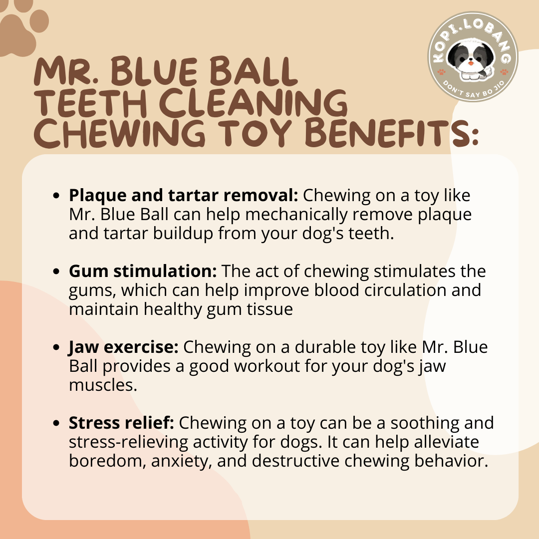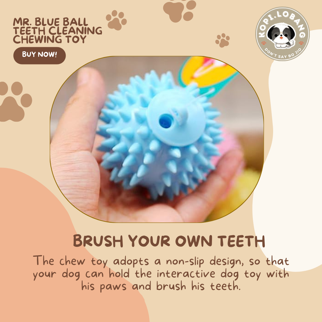 Treat your fur baby to the joy of playful dental care with MR. BLUE BALL Teeth Cleaning Chewing Toy. Make dental hygiene a breeze, and let your pup revel in a happier, healthier, and brighter smile! Say goodbye to doggy breath and hello to endless tail-wagging happiness!